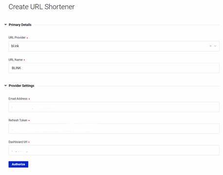 This will open a page called Create URL Shortener. Fill in the following fields: