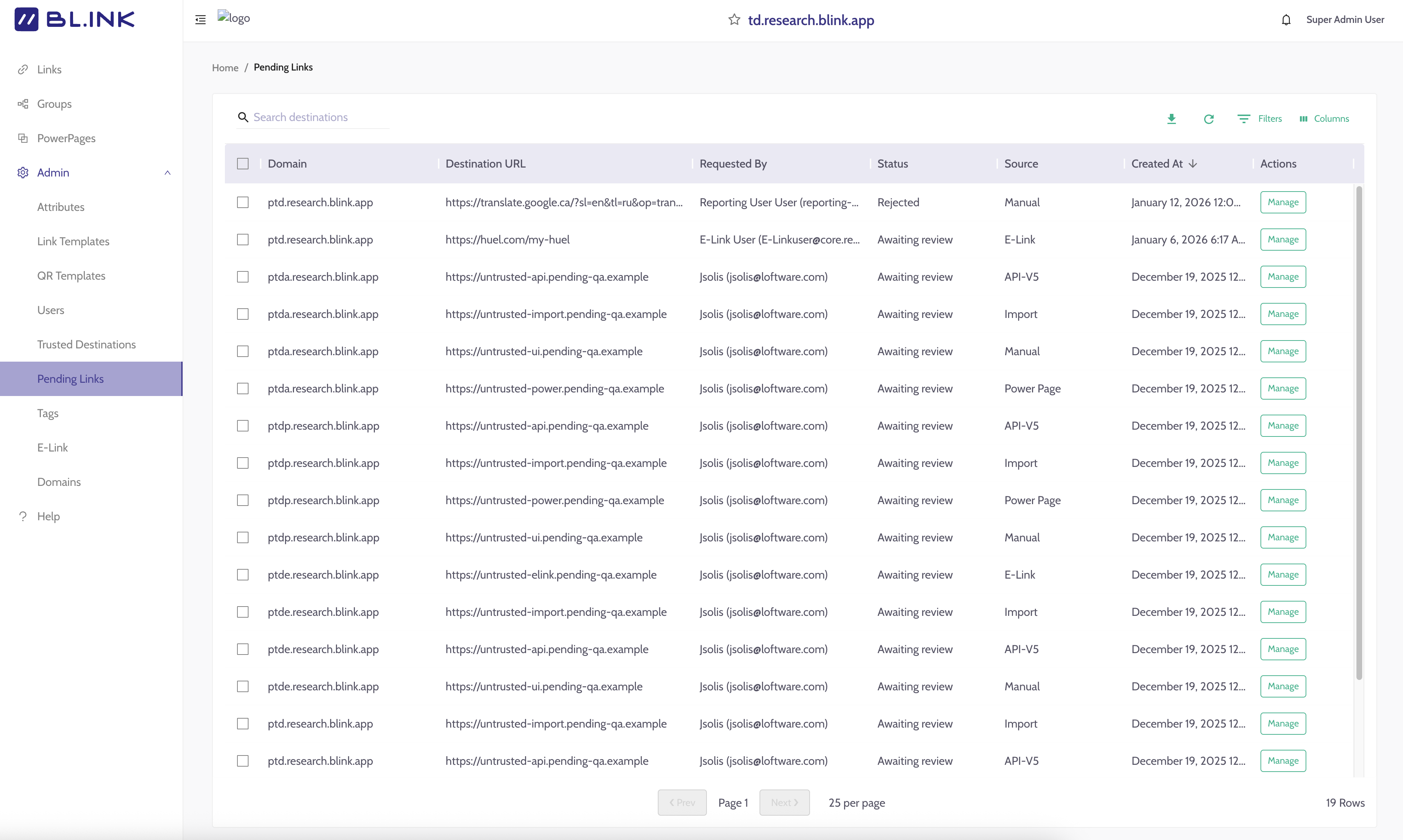 An admin may then login and navigate to Admin > Pending Links to review the link.